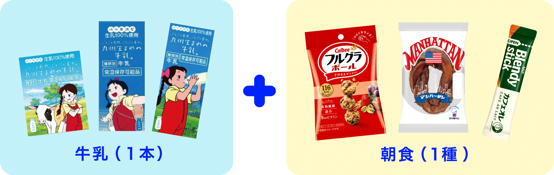 忙しい朝でも手軽に朝食をとるきっかけに!牛乳+牛乳と相性の良い食品の「朝食セット」を配布します。